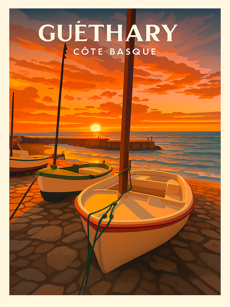 Plongez dans l’atmosphère unique du Pays Basque avec cette affiche artistique inspirée d’une photographie originale.