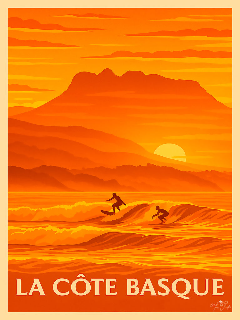 Plongez dans l’atmosphère unique du Pays Basque avec cette affiche artistique inspirée d’une photographie originale.