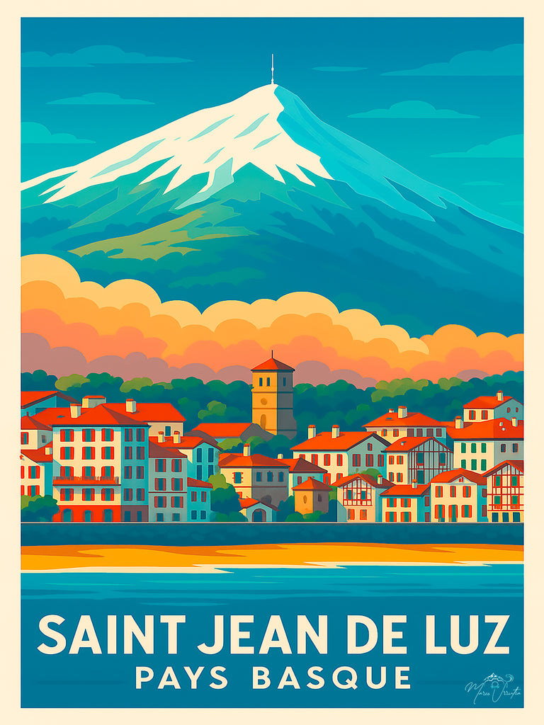 Plongez dans l’atmosphère unique du Pays Basque avec cette affiche artistique inspirée d’une photographie originale.