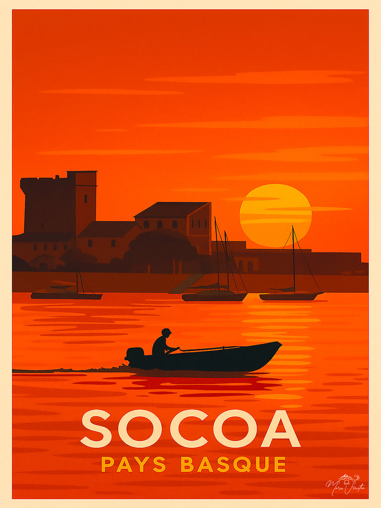 Plongez dans l’atmosphère unique du Pays Basque avec cette affiche artistique inspirée d’une photographie originale.
