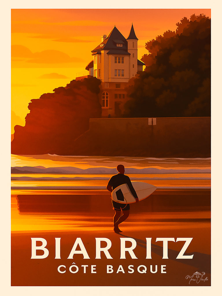 Plongez dans l’atmosphère unique du Pays Basque avec cette affiche artistique inspirée d’une photographie originale.